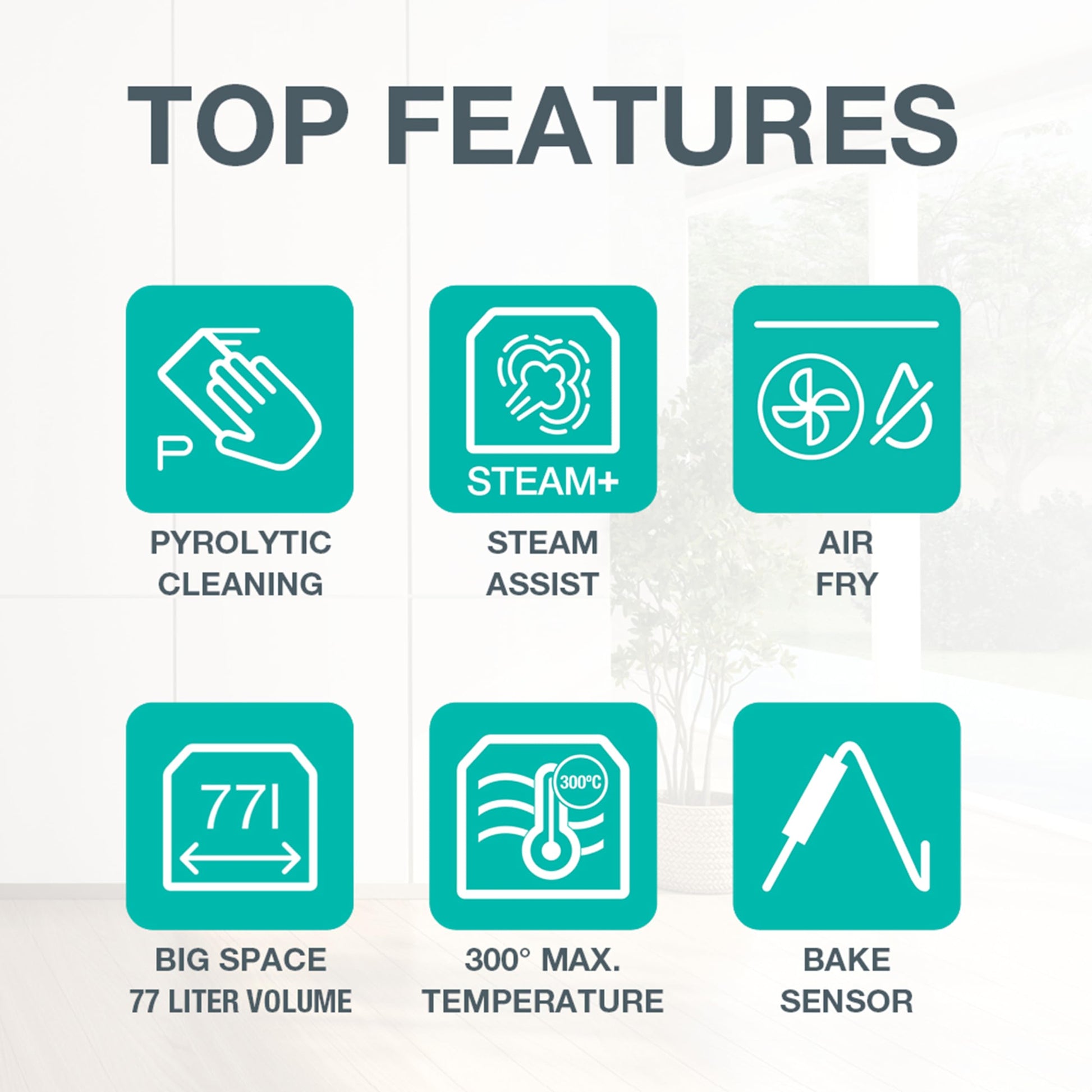 - Multifunktions-Backofen BigSpace 77 Liter SuperSize, StepBake, SteamAssist, Schnellaufheizung